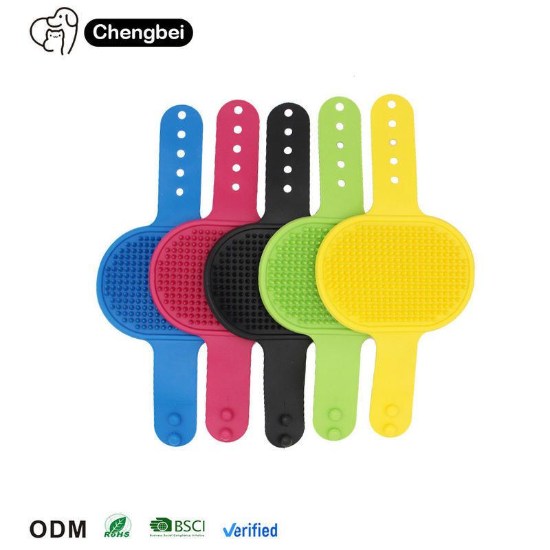 Manche réglable Massage apaisant Peigne en caoutchouc Pet toilette brosse nettoyage Logo personnalisé